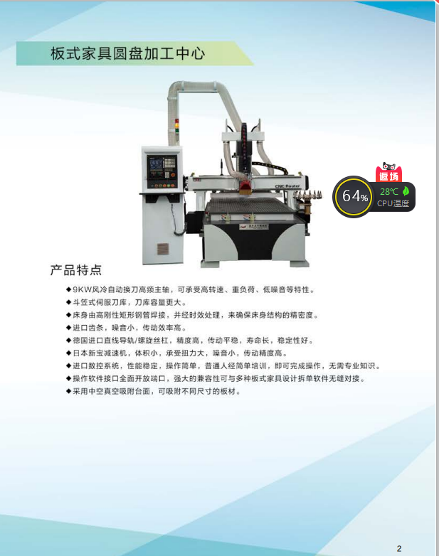 1530直排16刀库换刀开料机使用新代60系统,日本安川伺服驱动器,安川850伺服电机,贝士11千瓦变频器,热交换器,大电脑影视柜,德力西电器机箱配置。日本新宝减速机。双层真空吸附台面。3千姒吸尘器。
